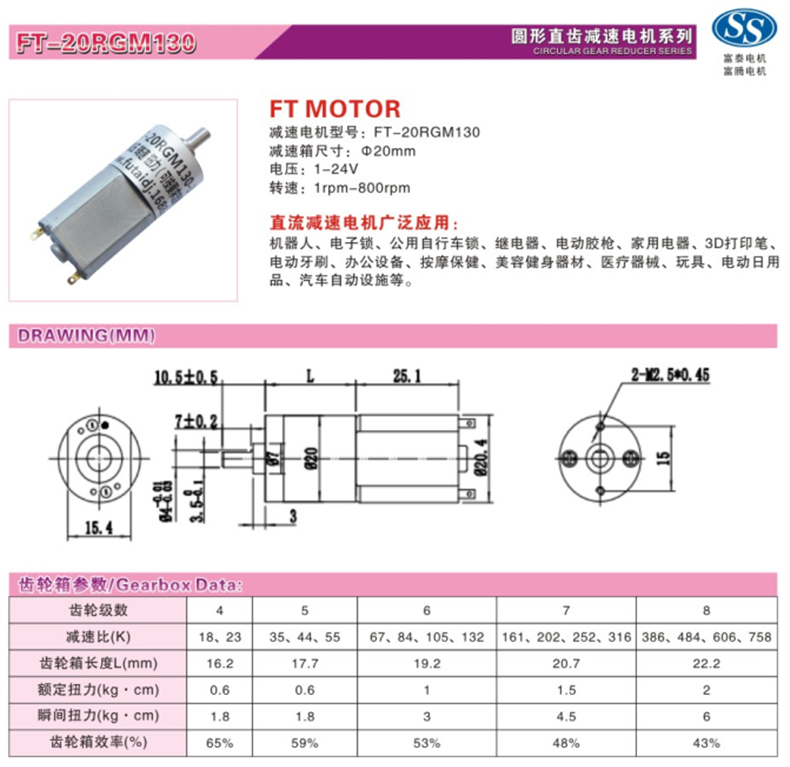 齿轮减速电机FT-20RGM130